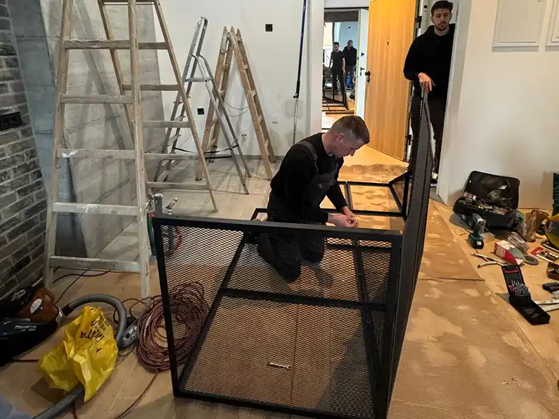 Projekt izvedbe čeličnog spuštenog stropa za privatnog investitora uključivao je izrazito zahtjevan prostor s velikom visinom, kosinama stropa, nadvojima te nepravilnim i kompleksnim zidnim površinama.